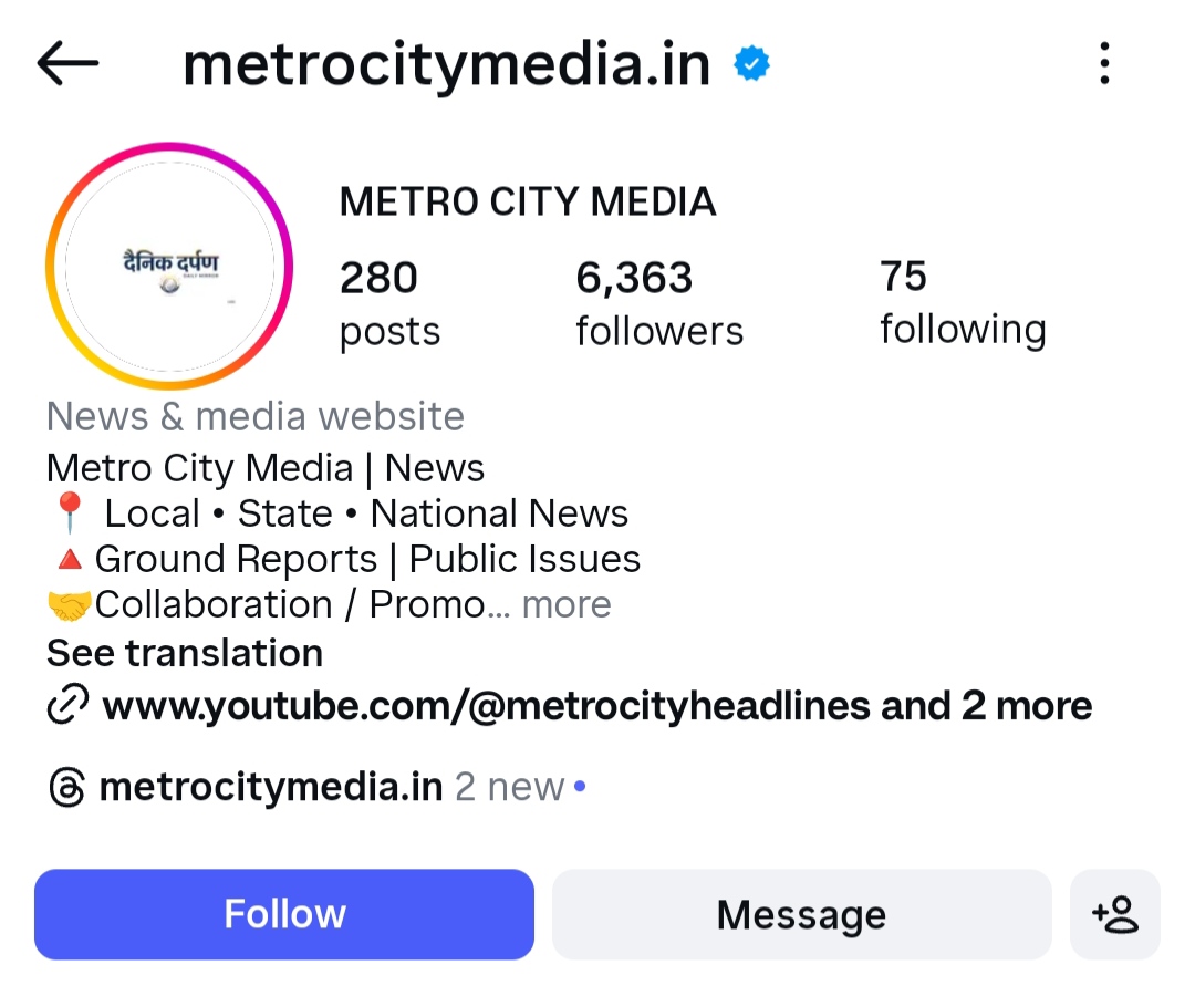 ( फॉलो करे @metrocitymedia.in इंस्टाग्राम पर )