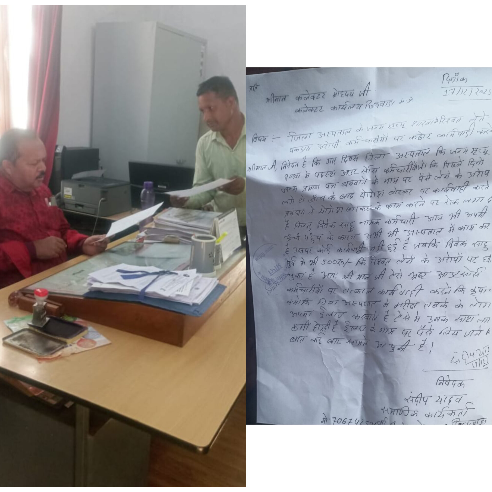 छिंदवाड़ा ताज़ा मामला: जिला अस्पताल की जन्म–मृत्यु शाखा में रिश्वत का आरोप, कलेक्टर कार्यालय पहुंची शिकायत