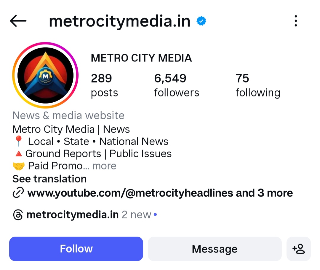 ( फॉलो कीजिए @metrocitymedia.in इंस्टाग्राम पर )